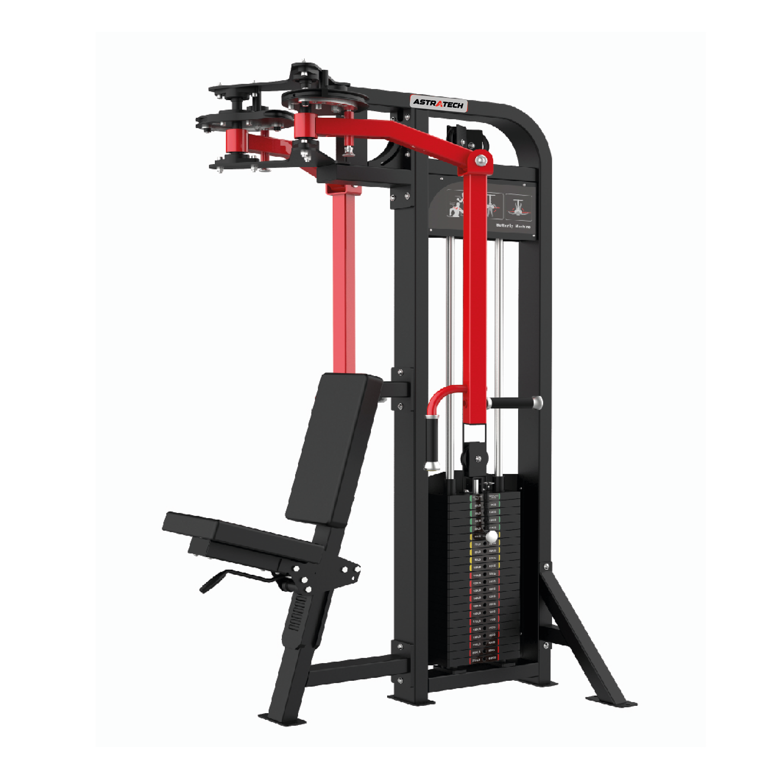 Com um design inteligente, a máquina permite alternar facilmente entre os exercícios de peck deck para o fortalecimento do peitoral e o pull-over para ativar os músculos dorsais. Assim, o equipamento atende diferentes objetivos de treino sem necessidade de ajustes complexos.