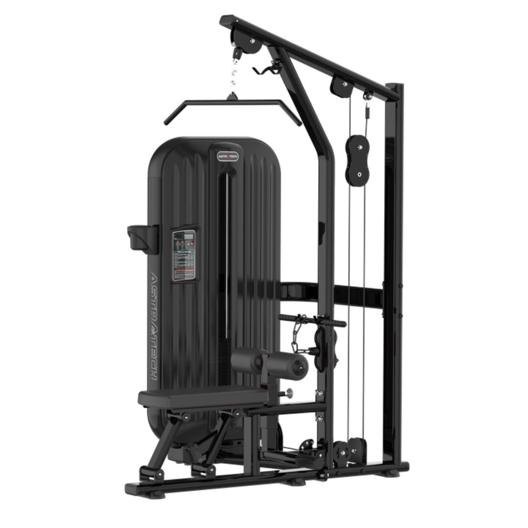 Essa máquina permite alternar entre puxada alta e baixa, possibilitando o trabalho de diferentes grupos musculares sem a necessidade de trocar de equipamento.