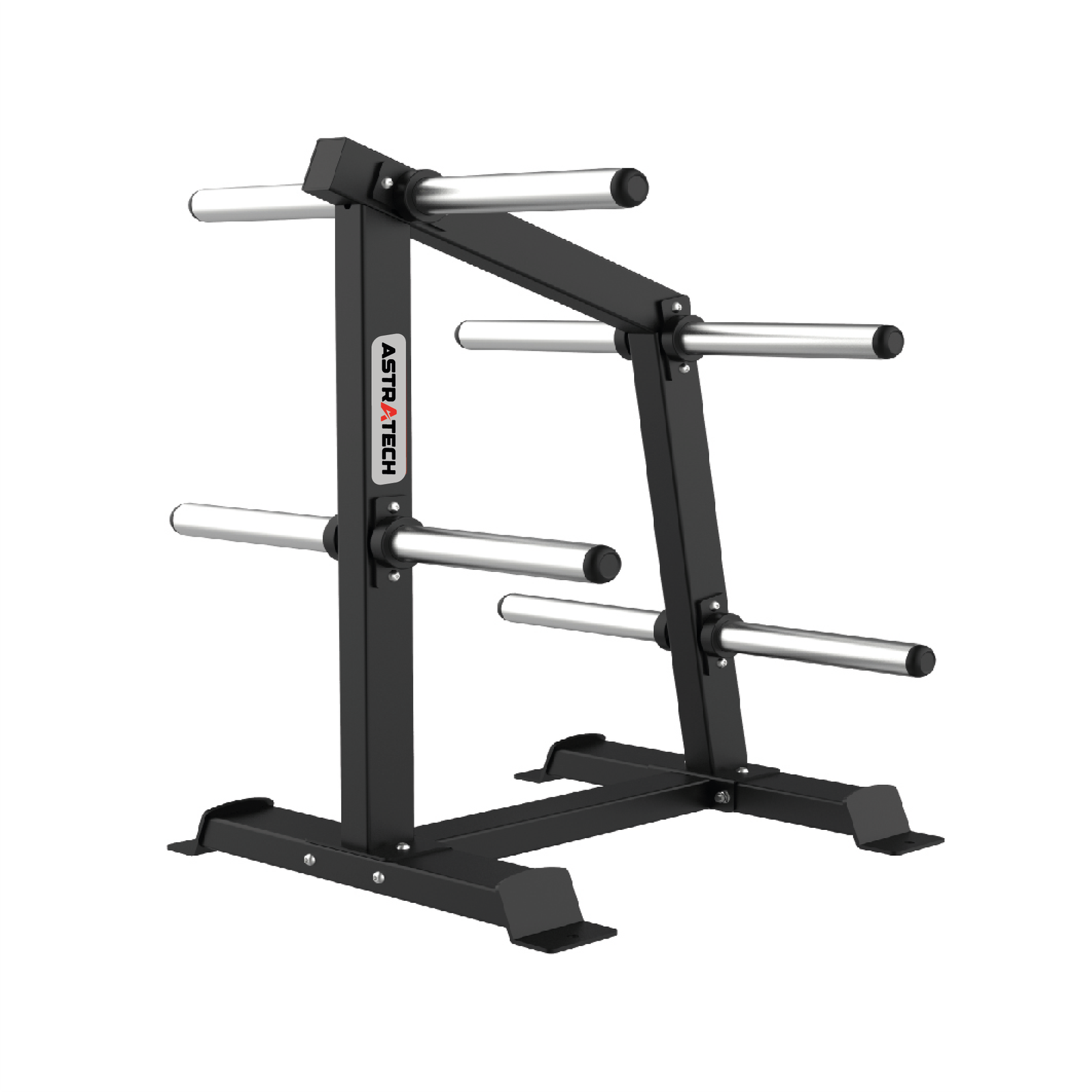 Construído em aço de alta resistência, esse suporte oferece estabilidade e segurança, evitando quedas e desorganização no ambiente. Seu design com quatro hastes estrategicamente posicionadas permite uma distribuição equilibrada do peso, otimizando o armazenamento e facilitando a troca de anilhas durante os exercícios.